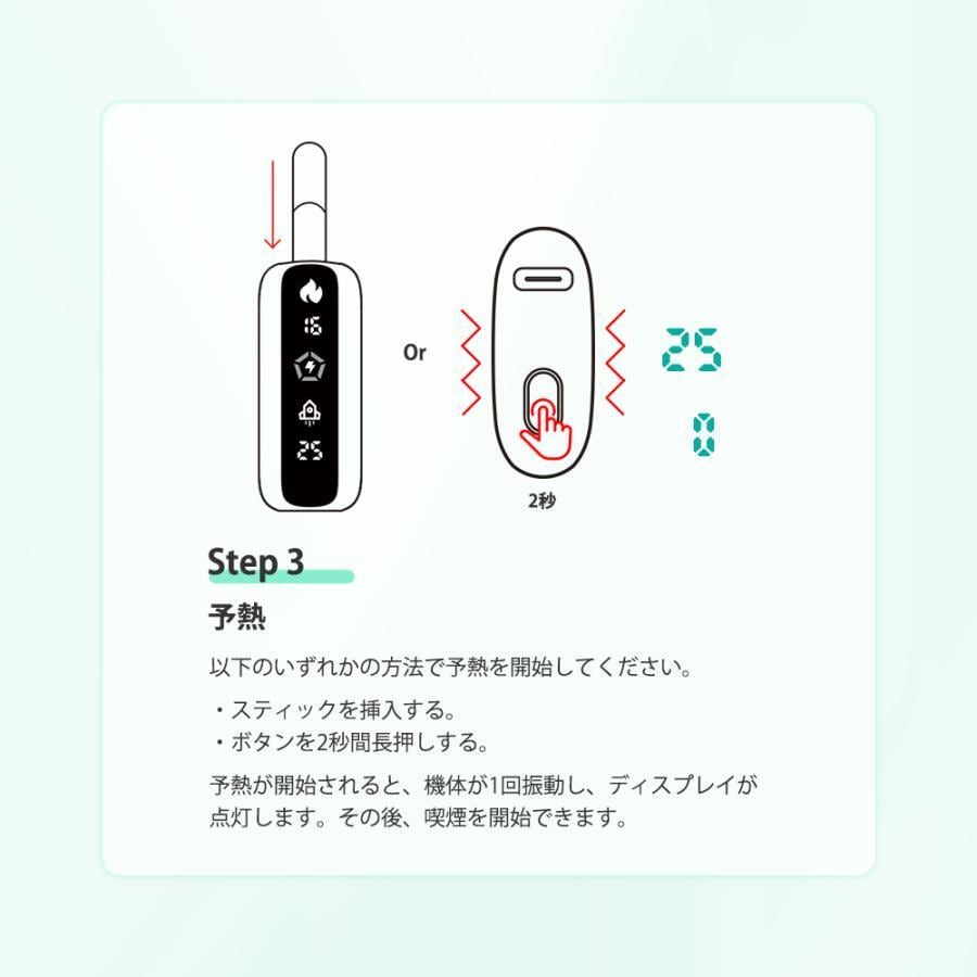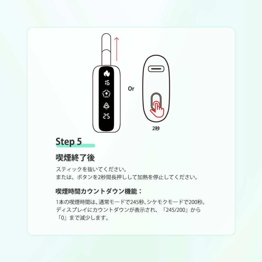 電源ON・予熱完了・残った2パフの際/最後の30秒